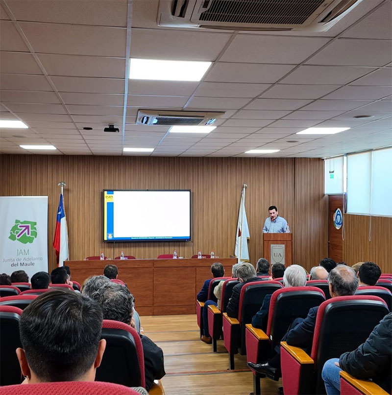La jornada fue moderada por Mario Molina Escalona, director de la Junta de Adelanto del Maule y presidente del Consejo Zonal Maule del Colegio de Ingenieros de Chile A.G., quien destacó la relevancia de fortalecer espacios de conversación multisectorial que permitan avanzar en soluciones para el territorio. La exposición principal estuvo a cargo de Roberto Herrera Cofré, doctor en Economía de la Universidad de Talca y especialista en desarrollo regional y agroecosistemas, cuya trayectoria en investigación y docencia aportó una mirada profunda a los desafíos estructurales de la región.
